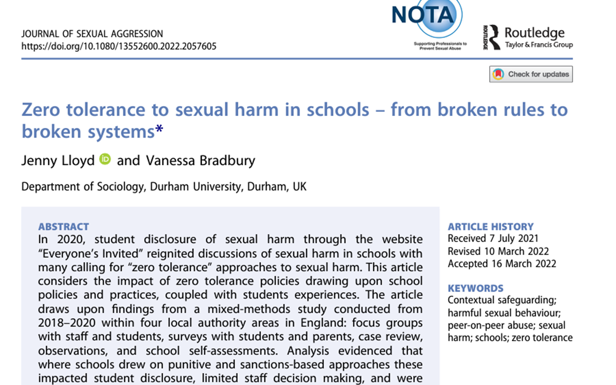 Zero tolerance to sexual harm in schools – from broken rules to broken systems