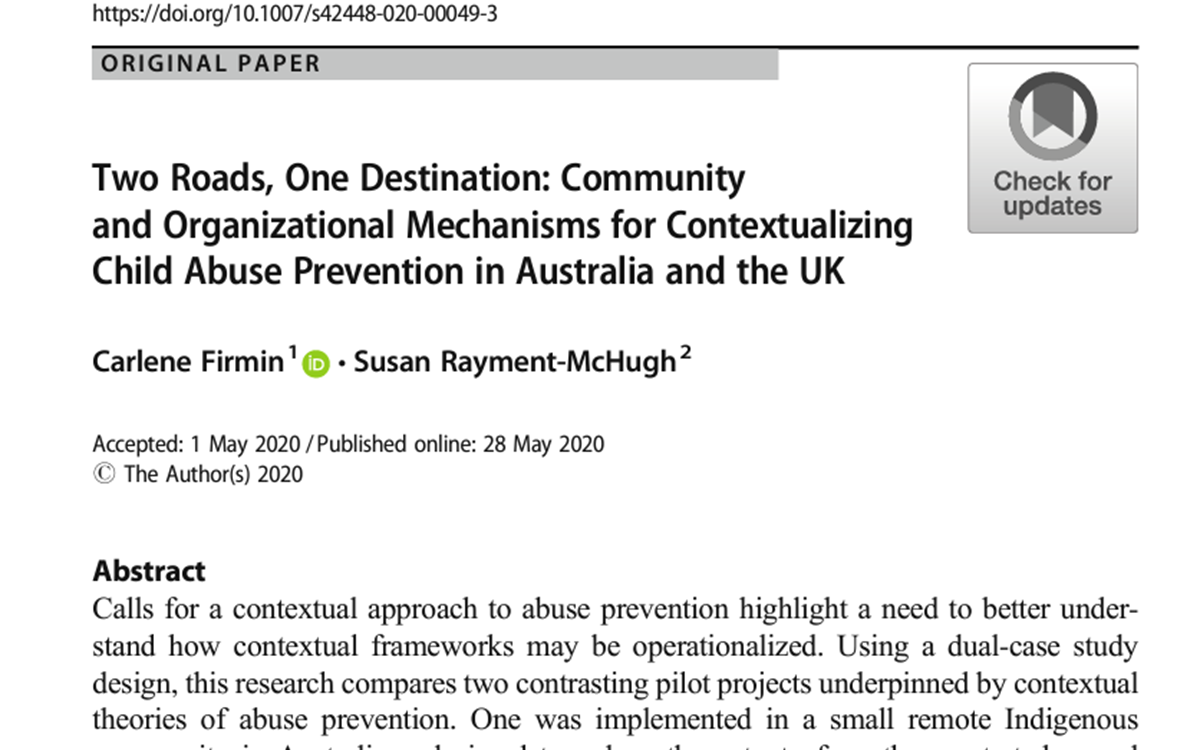 Firmin & Rayment-McHugh (2020). Using a dual-case study design, this research compares two contrasting pilot projects underpinned by contextual theories of abuse prevention.
