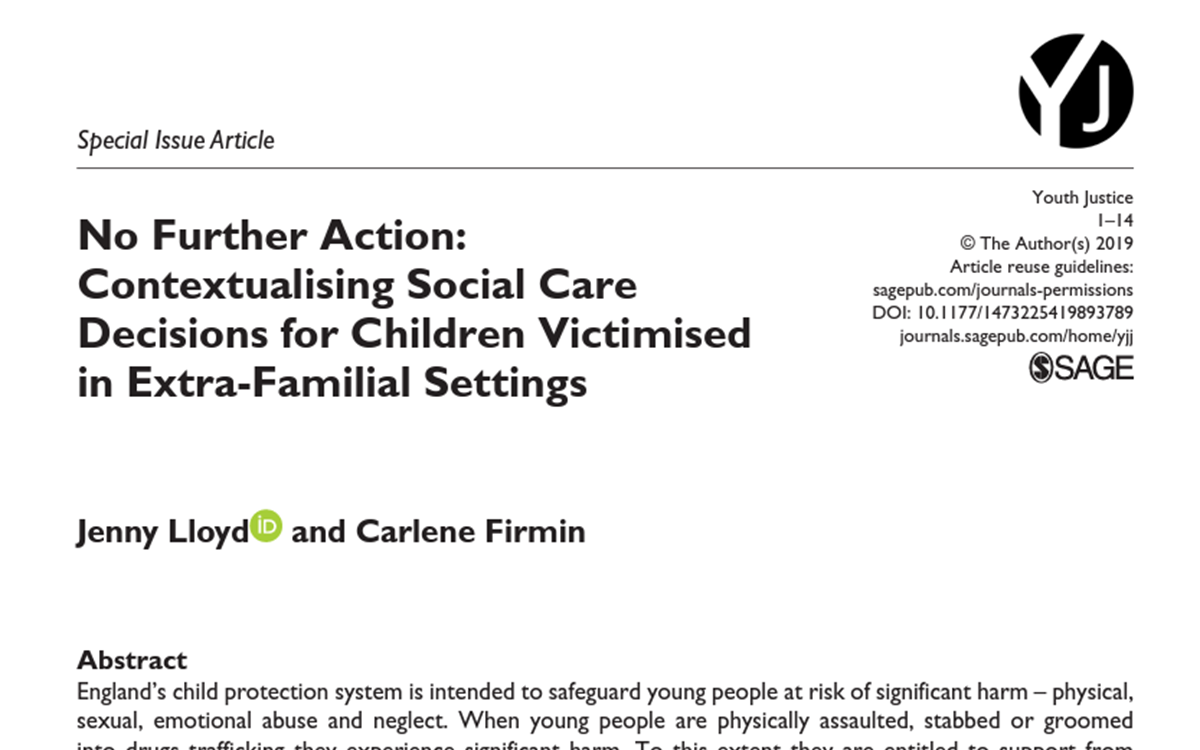 No Further Action: Contextualising Social Care Decisions for Children Victimised in Extra-Familial Settings