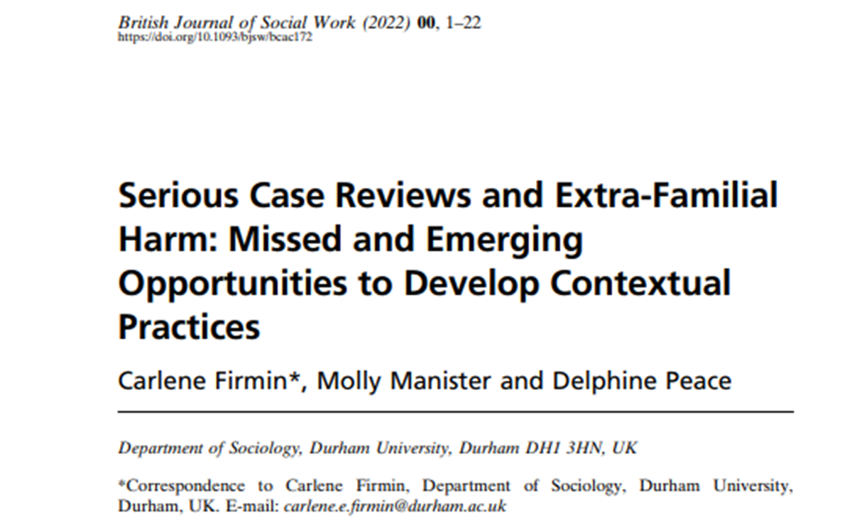 Firmin, Manister and Peace (2023). This study examined whether reviews of serious incidents (serious case reviews (SCRs)) provide an evidence-base for understanding the contextual dynamics of EFH and/or developing contextual responses.