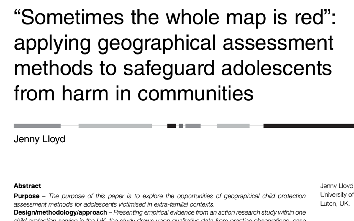 Lloyd (2020). The purpose of this paper is to explore the opportunities of geographical child protection assessment methods for adolescents victimised in extra-familial contexts.