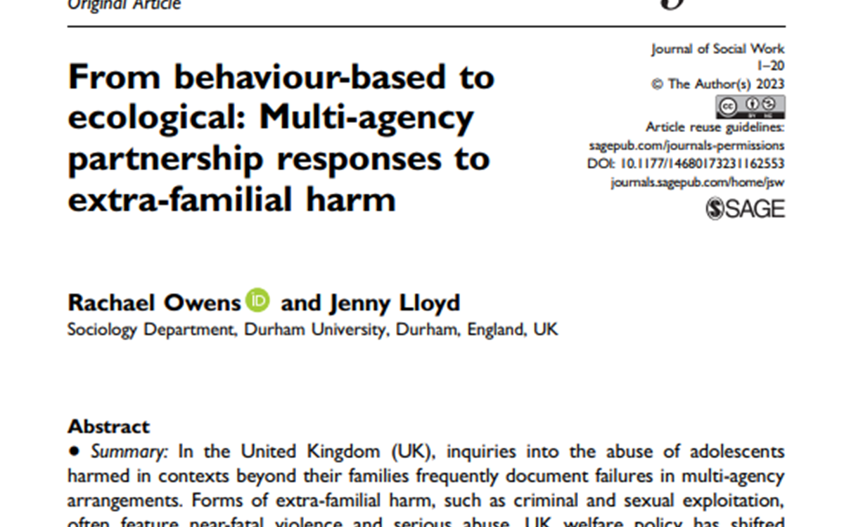 Owens & Lloyd (2023). This articles explores multi-agency responses to extra-familial harm and the importance of acknowledging differing approaches. This link takes you to our 'improving multi-agency partnerships page' where you can access the article and free practitioner resources.