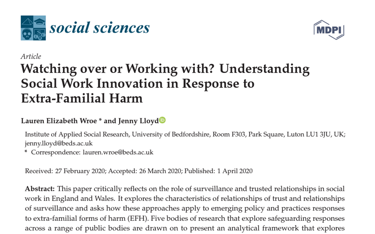 Wroe & Lloyd (2020). This paper critically reflects on the role of surveillance and trusted relationships in social work in England and Wales.