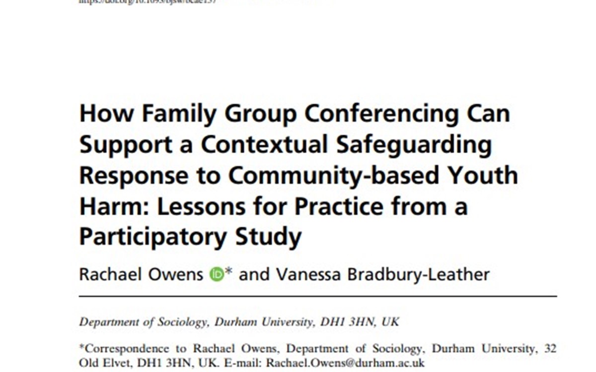 Owens, R. & Bradbury-Leather, V. (2024). This article reports on a study that brought Family Group Conferencing (FGC) and Contextual Safeguarding together to create an innovative practice response to extra-familial harm.