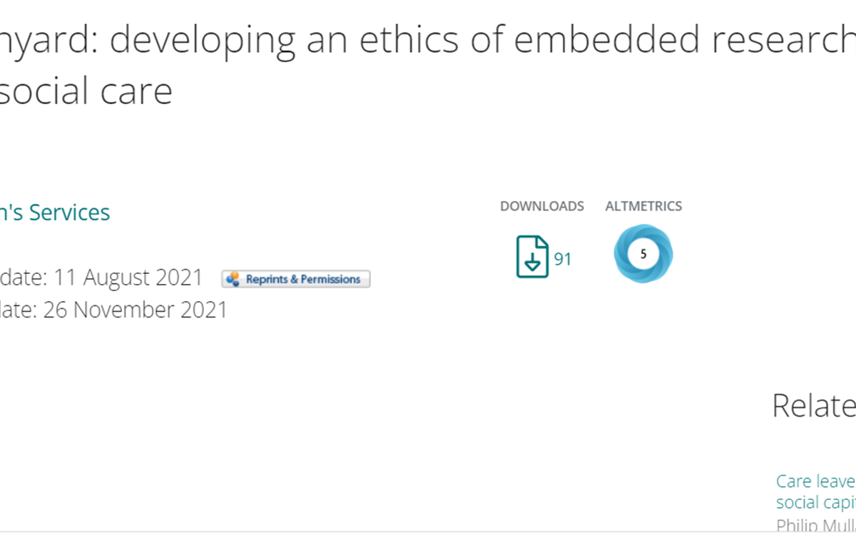 Lloyd (2021). This paper considers the opportunities for embedded methodologies for research into children’s social care and the ethics of this method.