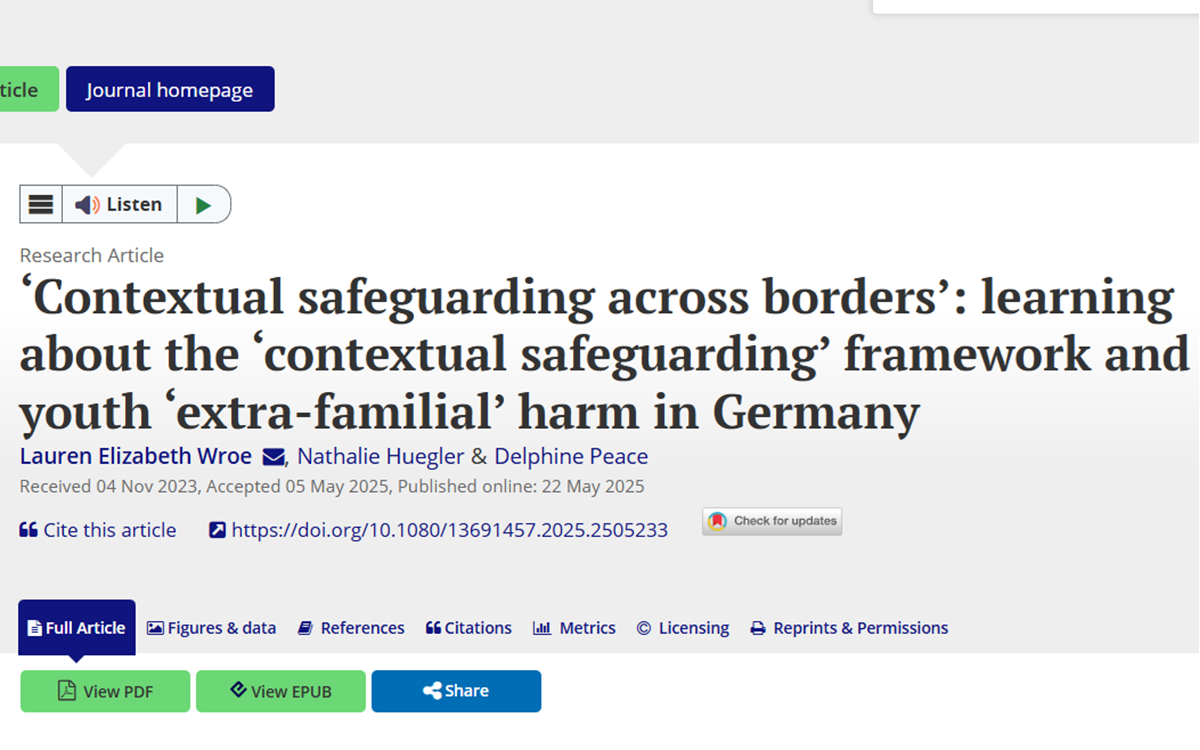 ‘Contextual safeguarding across borders’: learning about the ‘contextual safeguarding’ framework and youth ‘extra-familial’ harm in Germany