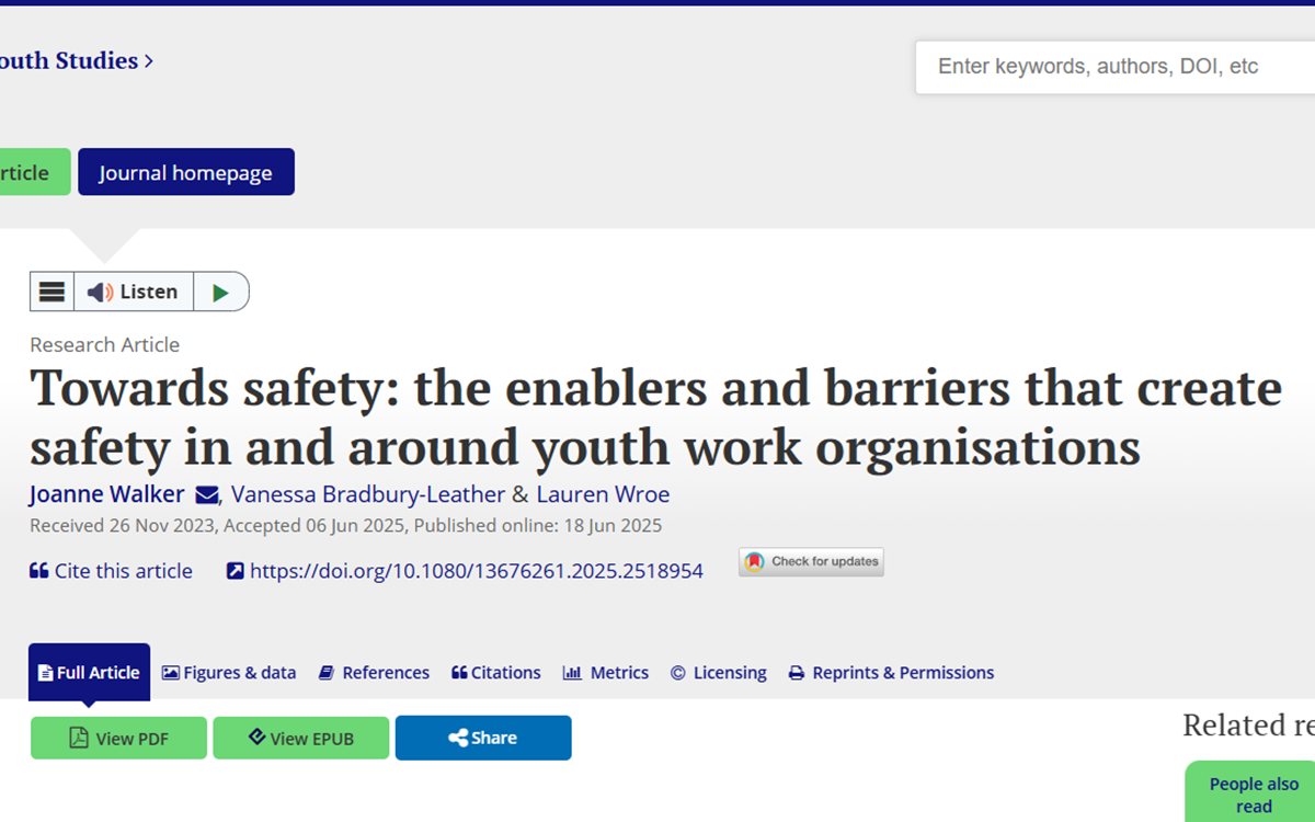 Towards safety: the enablers and barriers that create safety in and around youth work organisations