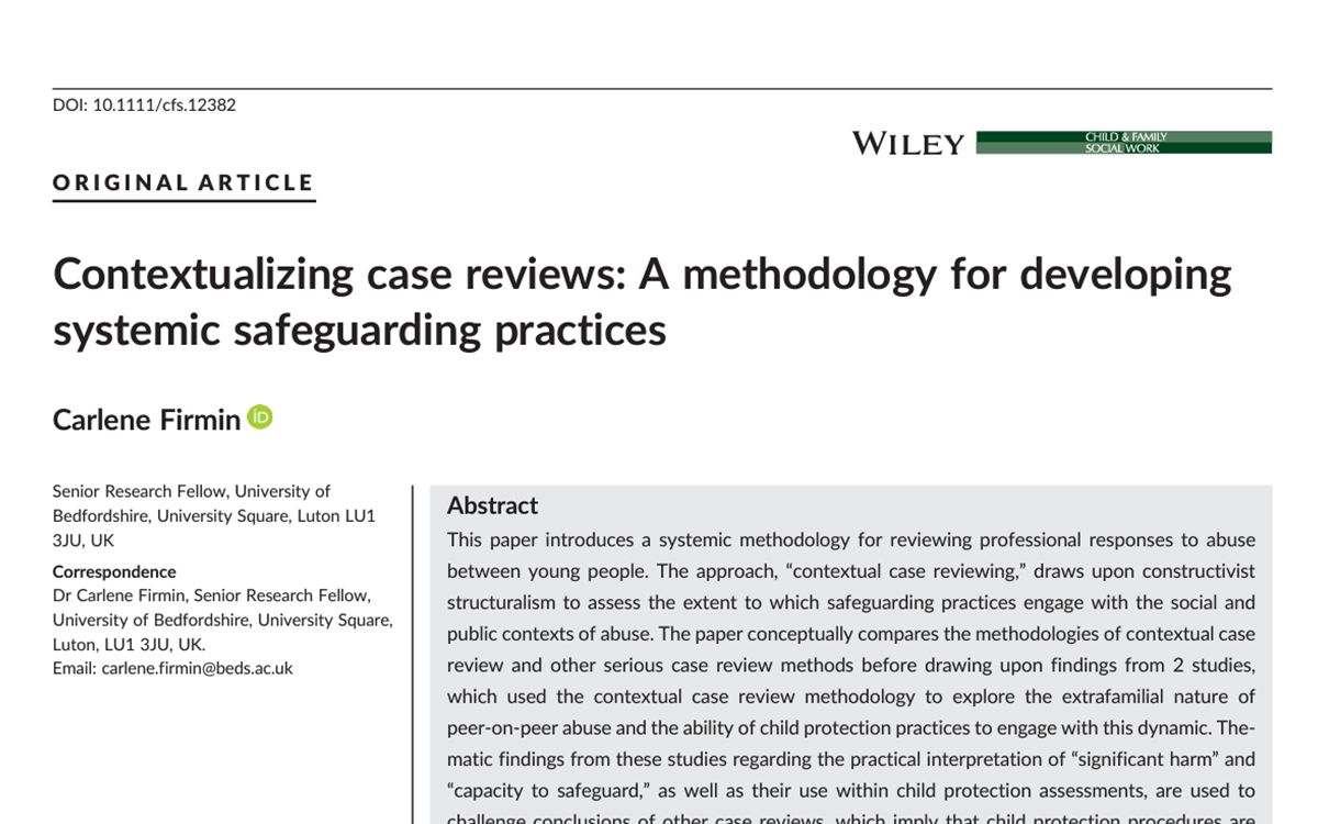 Contextualizing case reviews: A methodology for developing systemic safeguarding practices