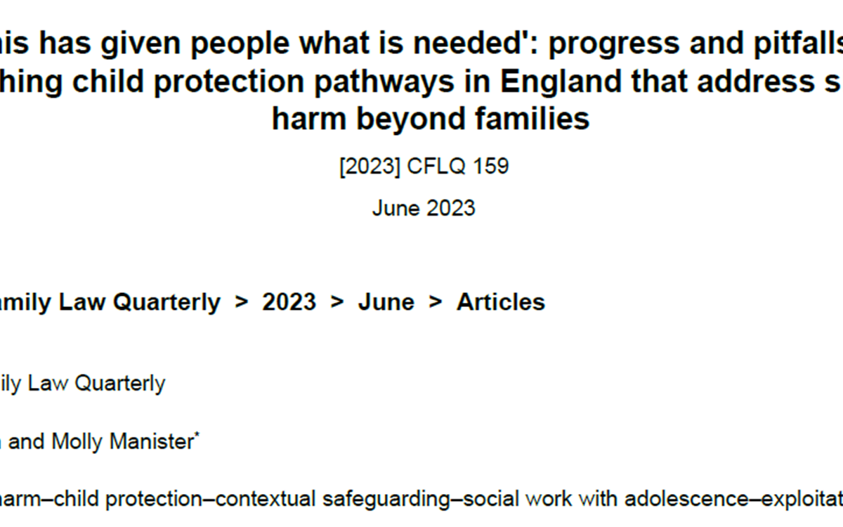 Firmin, Lloyd, Walker & Owens (2022). In 2018, England’s safeguarding guidelines were amended to explicitly recognise a need for child protection responses to extra-familial harms. This article explores the feasibility of these amendments.