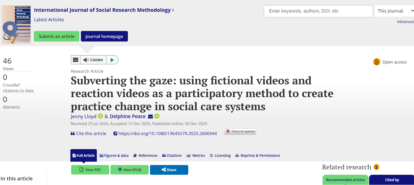 Lloyd, J. and Peace, D. (2025). This article presents a creative research and teaching methodology that uses fictional videos, a form of ‘reaction videos’ and workshops with young people and professionals, aimed at changing professional approaches to discussing young people.