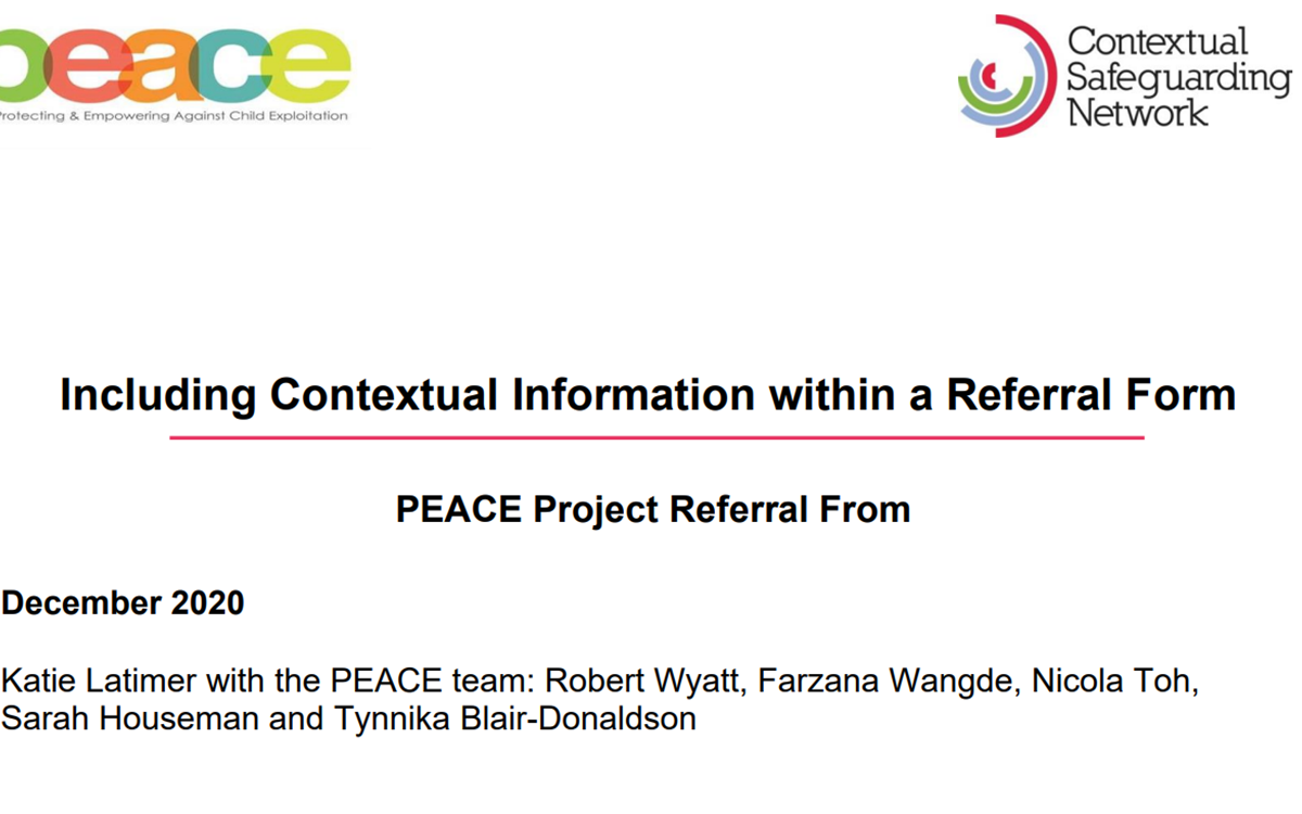 - How can Contextual Safeguarding theory and practice be used and developed within PEACE?