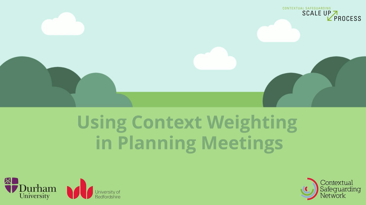 As you incorporate contexts into assessments, you need to incorporate these into the response plans that come out of assessments. One way to achieve this, is thinking through which contextual factors – and contexts themselves – have the greatest influence over the problem you are trying to address and ensuring that plan targets those first. In other words – ask yourself ‘what context (or contextual factor) needs to change first for safety to increase for that child, family, peer group, etc’. We call this process ‘Context Weighting’. Context Weighting activities have taken place in every local area to embed Contextual Safeguarding – in this sense the practice is a core marker that the approach has been adopted.