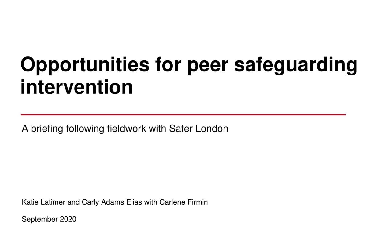 This briefing shares learning from a research project that explored the potential for peer interventions within Safer London, a voluntary sector support service for young Londoners affected by exploitation or violence.This briefing also shares additional detailed examples of work within Safer London as the organisation continues to develop safeguarding interventions that work with the significant social relationships in young people’s lives.