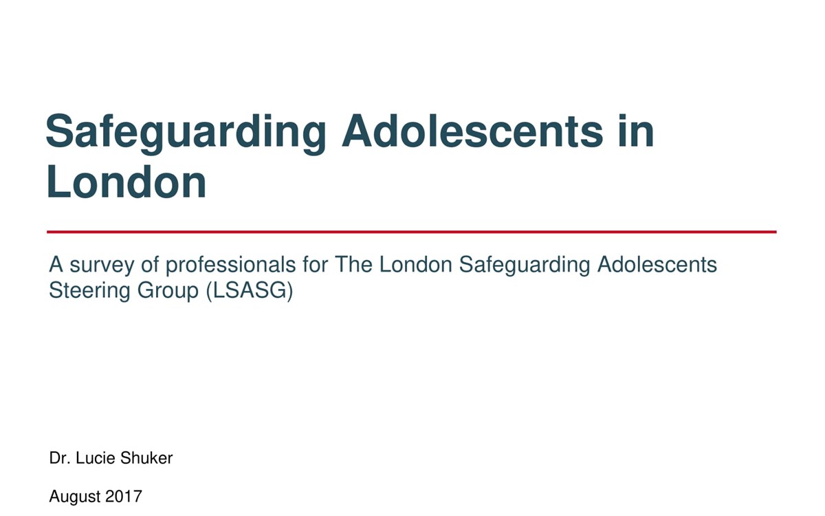 This report presents the findings of a survey of 120 London-based professionals from a range of agencies, on their views and experiences of safeguarding adolescents in the capital. It was undertaken as part of a programme of work for the London Safeguarding Adolescents Steering Group (LSASG) and will inform the development of a new chapter on safeguarding adolescents in the London Child Protection Procedures.