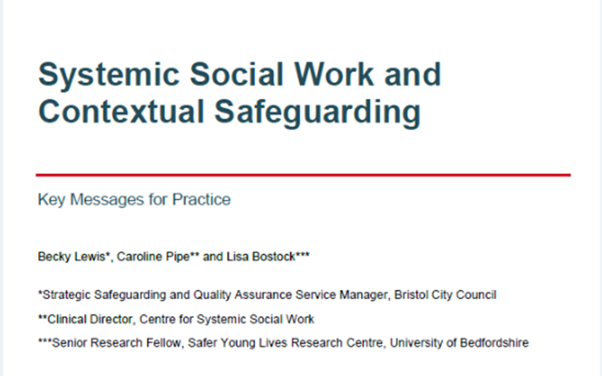 In this briefing we explore the relationship between Contextual Safeguarding and systemic practice theories and approaches within social work – and the opportunities there are to integrate these approaches within a local area’s practice model. We have provided cases examples and some questions to support applying these ideas in practice.