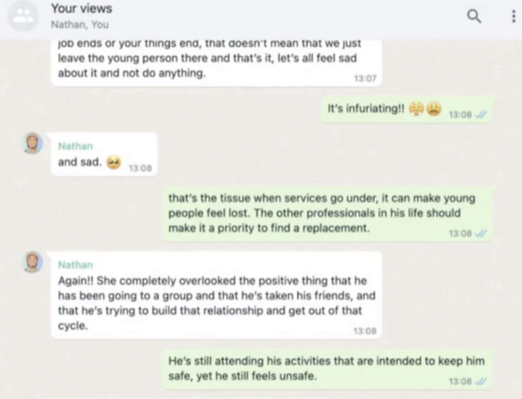 See the slide deck for step-by-step instructions for running the workshop and using the videos that we created as reflective tools. The fictional panel video is broken down into three clips. The fourth video shows young people’s reactions to the fictional panel video. For practicality we’ve showed this through the form of a WhatsApp conversation between two fictional young people reacting live to the panel. Everything they say is directly quoting what young people we have consulted with have said. A script of this video is available for those who might struggle to read the conversation on the video. The fifth video, also fictional, presents an imagined 'improved' version of the same panel based on young people's feedback and can also be included in the workshop.
